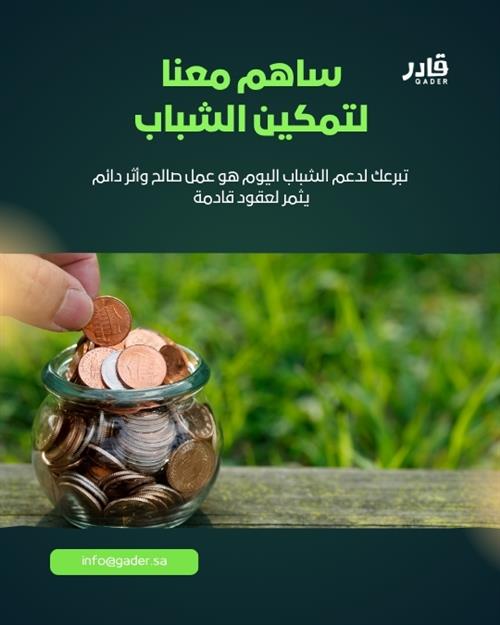 صدقة جارية لا تنقطع ساهم في دعم مشاريع جمعية قادر لتمكين الأفراد وتحقيق التنمية الذاتية. قال رسول الله ﷺ: "خير الناس أنفعهم للناس" 🔹 20 ريال 🔹 40 ريال 🔹 60 ريال أجرك دائم مع كل فرصة تمكين تساهم فيها، ومع كل حياة تُحدث فيها تغييرًا!